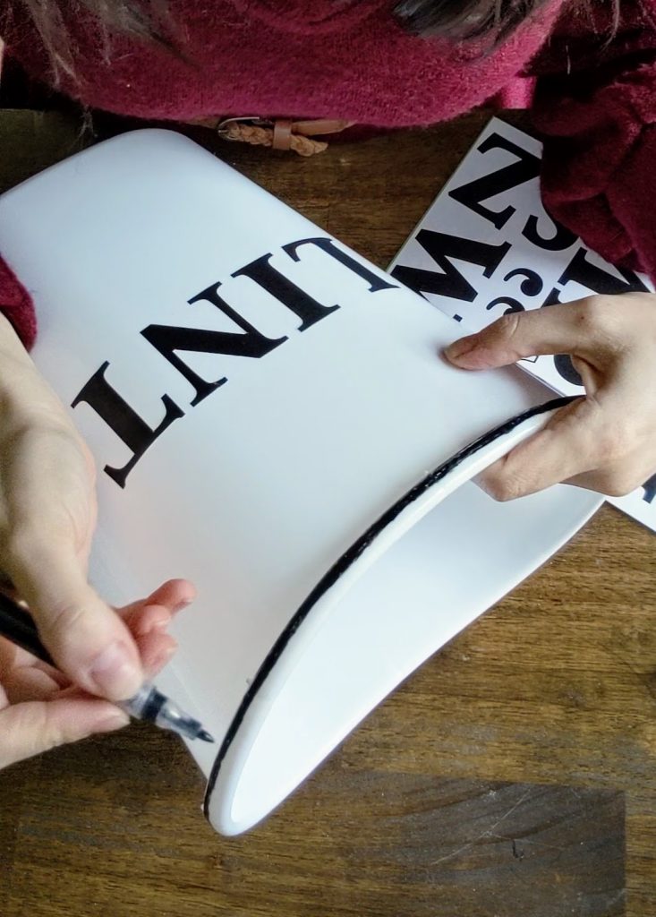 I already had a black paint pen on hand from a set of pens for rock painting. (In retrospect, I think a sharpie paint pen would have went on more smoothly, so that is the paint pen I listed above.)