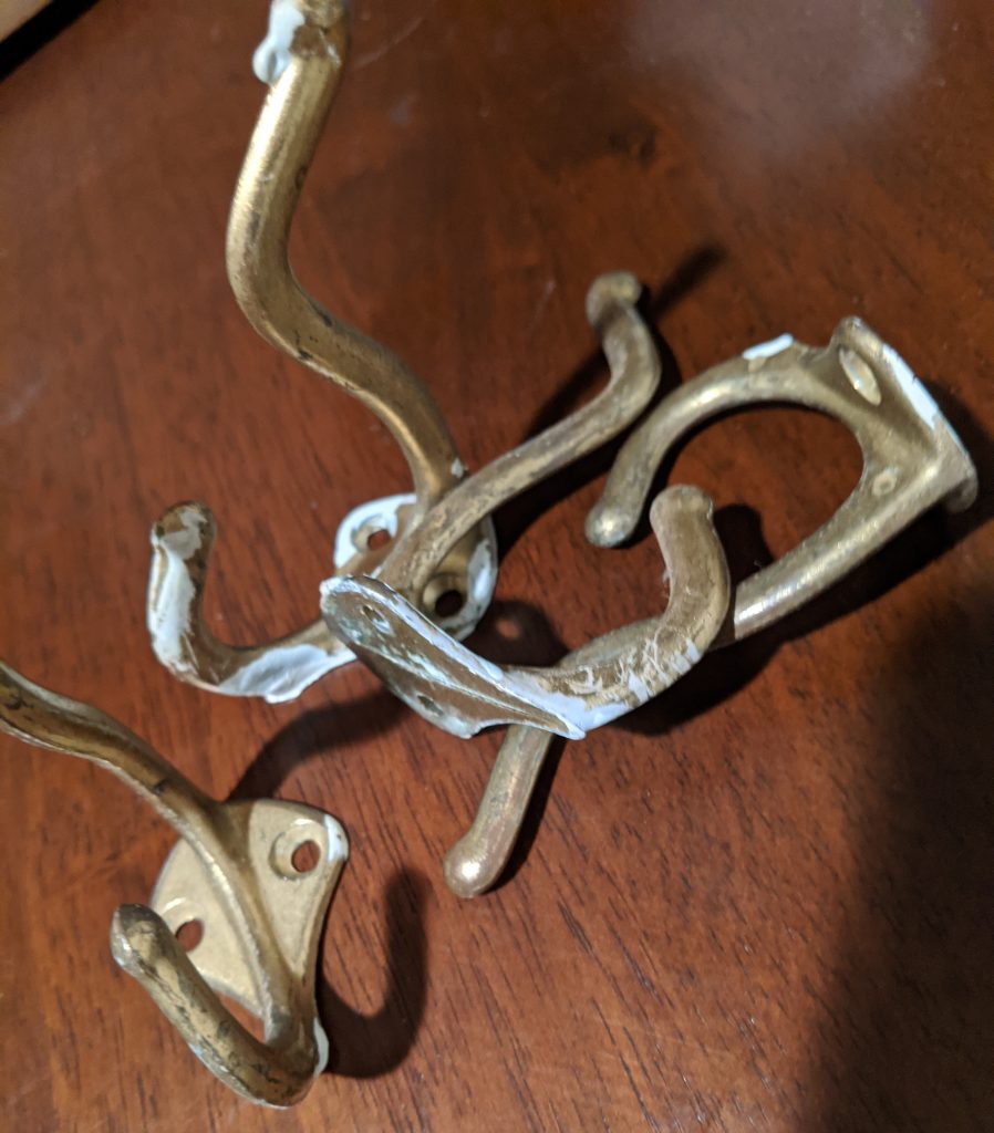 I love the slightly tarnished finish on the brass hooks. For the price of free, this little project was so worth the effort!