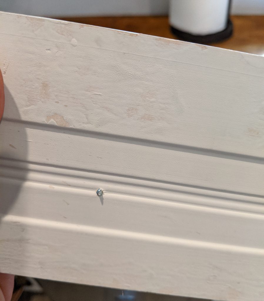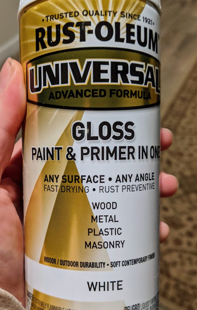 I had some white spray paint left from another project, so applied a couple thin coats to the front side of the trim piece. I love the smooth, durable finish this spray paint gives.