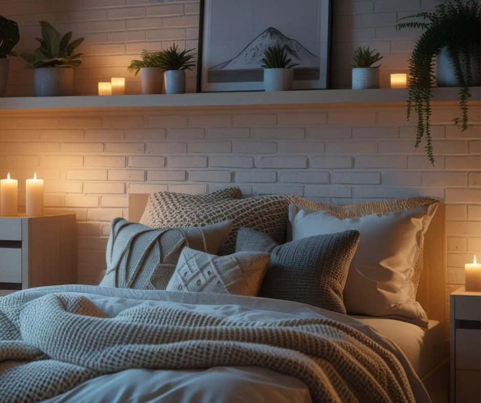 - Warm lighting (lamps, string lights, candles) makes rooms feel inviting.