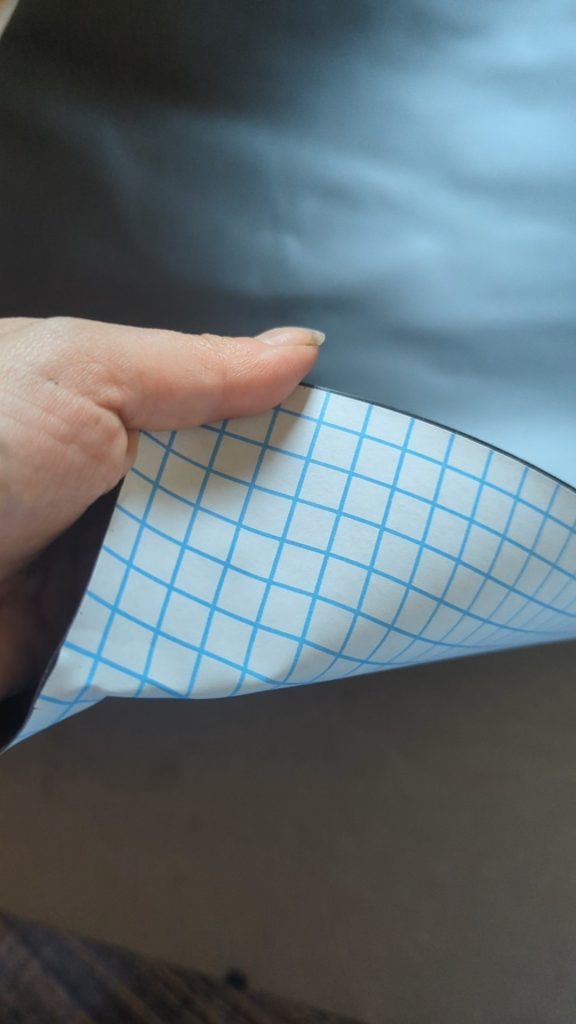 Once the glass was out, I attached a peel-and-stick magnetic chalkboard roll kit to the backing. This material is much thicker and sturdier than regular chalkboard contact paper, which made it easy to apply smoothly without bubbles.