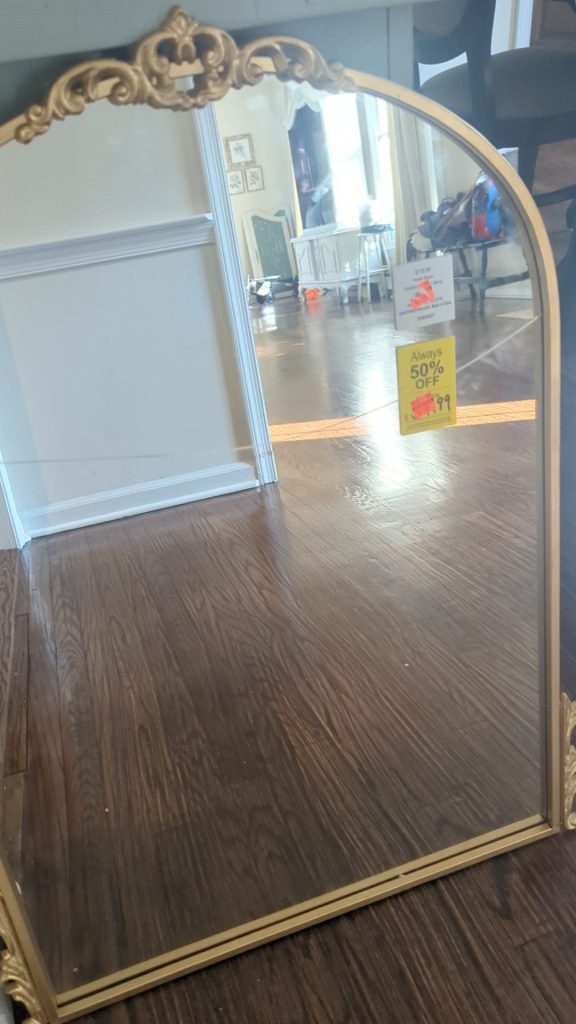 The other piece that sparked this makeover was a large gilded mirror I’d found months ago at Hobby Lobby for just $10. It had a crack in the glass, but I saw its potential and planned to turn it into something…a chalkboard, corkboard? I wasn’t sure at the time, but I knew it would be something!