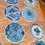Making the wicker chairs and milk can bistro set had me thinking about how to make coasters out of ceramic tiles. I love blue and white for our deck and formal living room, so I decided to try to make some coasters that have the look similar to a blue chinoiserie vase. That way, I could use them both indoors on the end tables and out on the patio. These blue and white napkins look like they would be the perfect thing to decoupage with!