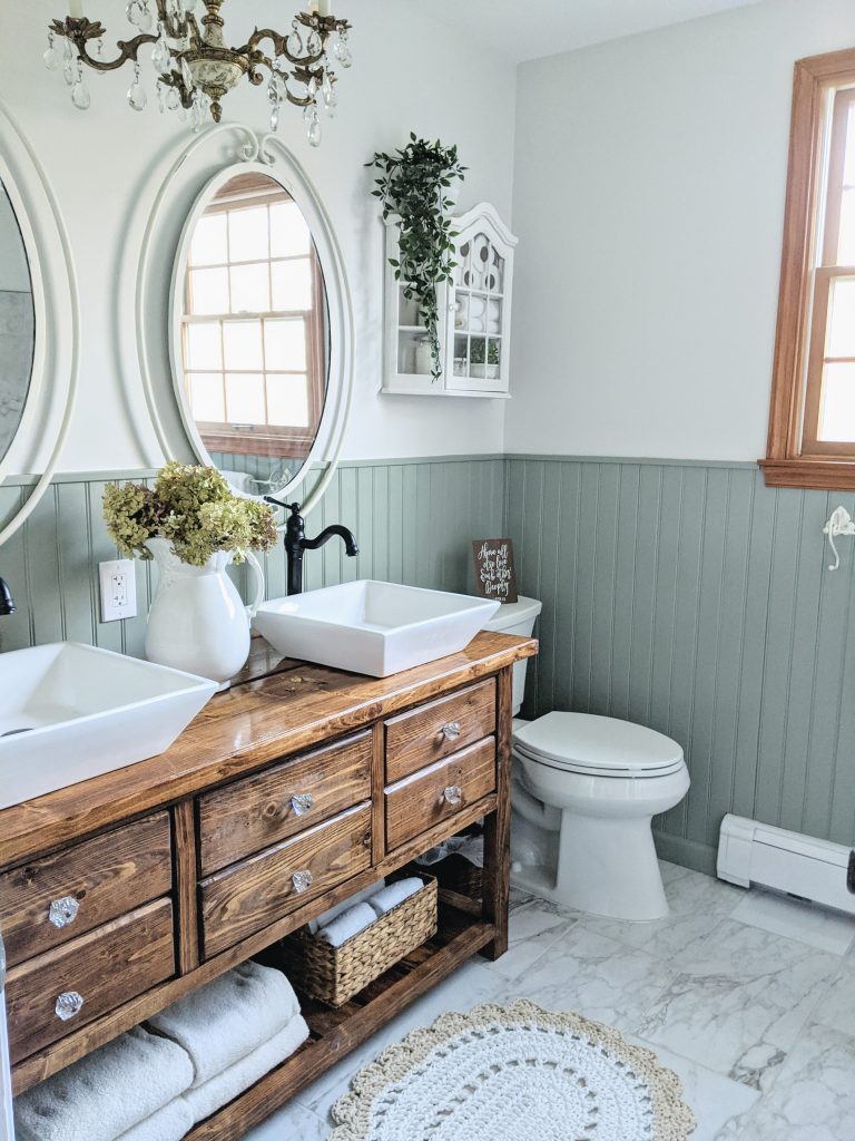 This oval crochet rug adds some cottage charm to the bathroom. In this post, I’m sharing the process to crochet a rope rug, as well as a free pattern for a vintage inspired bath mat! Post contains affiliate links.