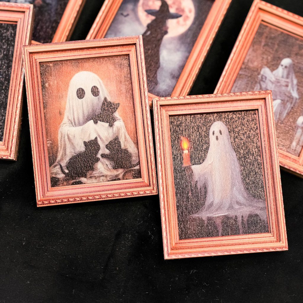 Another hauntingly simple way to add some Halloween flair is to swap your fridge magnets for these wooden framed ghost painting magnets. They put a spooky twist on classic vibes.